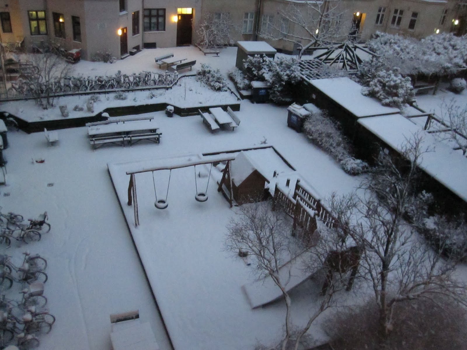 Unlike the last two winters we've experienced in Denmark (which have been two of the coldest, snowiest winters on record), this has been a fairly mild winter. It's only snowed a few times this season, and only the first January snow stuck. However, we woke up this morning to this beautiful sight! You may of heard about the cold snap that has hit most of Europe: over 180 people have died from the cold, and places as far south as Barcelona have had snow this past week! Here in Denmark, the temperatures have been pretty cool, between -5 to -7 Celsius (the high teens to mid-20s in Fahrenheit), but the sun has been out and it hadn't snowed until this morning.